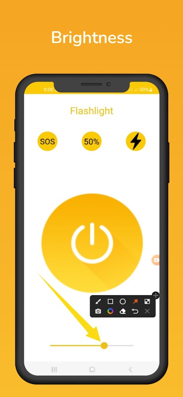 Zaklamp Zaklamp Gebruik de zaklamp mobiele zaklamp als de stroom plotseling uitvalt terwijl je onderweg een donker boek leest. Als je iets belangrijks kwijtraakt, gebruik dan de LED Zaklamp om heel gemakkelijk te vinden wat je nodig hebt. De zaklamp verlengt de levensduur van de batterij. Flitslicht-app U kunt gratis fel licht krijgen door gebruik. Bovendien kunt u het oplaadpercentage zien door de app te gebruiken. De zaklamp-app voor mobiele telefoons heeft helderheid, deze kan worden gebruikt om het mobiele huidlicht te verminderen en te vergroten, als er geen mobiele achteruitrijcamera is, kunt u het nodige werk doen door de helderheid te verhogen. Ook als er een apparaat kapot is in de auto, kun je de zaklamp mobiele zaklamp gebruiken om je apparaat te zien.
