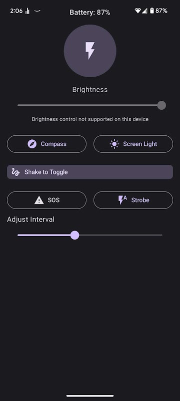 Strobe/SOS activeren: Veeg naar links of rechts om toegang te krijgen tot de stroboscoop- en SOS-modi en pas de instellingen indien nodig aan.