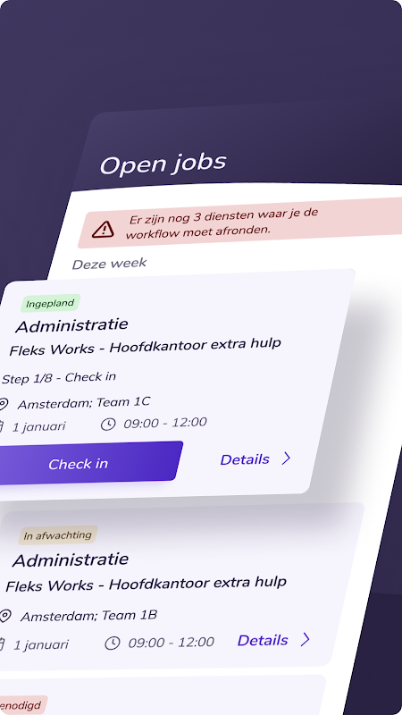 Fleks is een platform waarmee organisaties alles kunnen regelen voor hun flexkrachten op het gebied van beschikbaarheid, inschrijvingen, planning en uren registratie. Via de app zijn je flexkrachten volledig op de hoogte van hun rooster, openstaande diensten en kunnen ze direct hun beschikbaarheid opgeven.