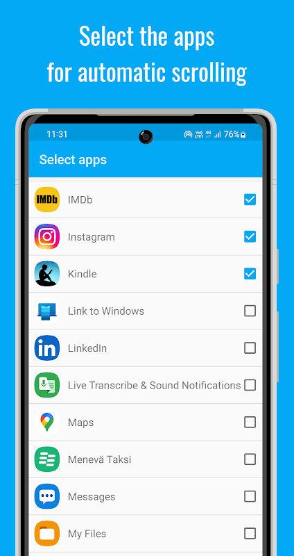 ★ Selecteer de apps waarin u de automatisch scroll-widget wilt laten verschijnen