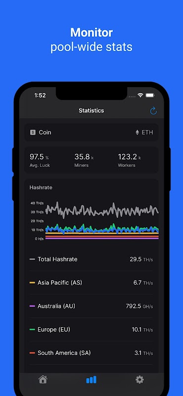 Flexpool Android brengt alle kracht van ons webplatform rechtstreeks naar je broekzak, en meer! Houd uw miners goed in de gaten door uw favorieten op te slaan voor snelle toegang. Houd persoonlijke en poolbrede statistieken bij. Bekijk gedetailleerde statistieken over beloningen, betalingen, blokkades en werknemers. Dit alles en meer is naar uw mobiele apparaat gekomen.