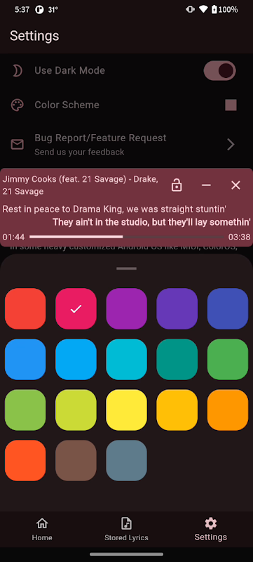 4. Het zwevende venster is aanpasbaar, inclusief de achtergrondtransparantie en de songtekstkleuren.