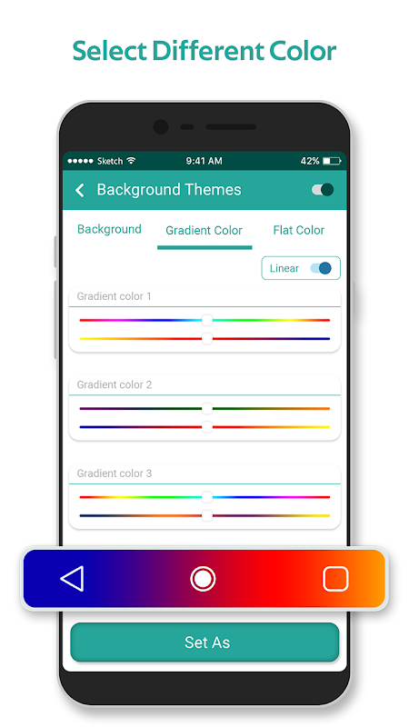 Zwevende navigatiebalk - Aangepast omvat een reeks hulpprogramma's zoals hoogte, breedte, kleur, knopkleur, achtergrond, verloopkleur, individuele aanraakacties, knoppictogrammen, enz. Zwevende navigatiebalk - Aangepast is een diepgaande navigatiebalk-maker en editor-app die dient het doel effectief en efficiënt!