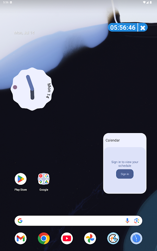 Eenvoudige en minimale zwevende klok die bovenop andere apps blijft.