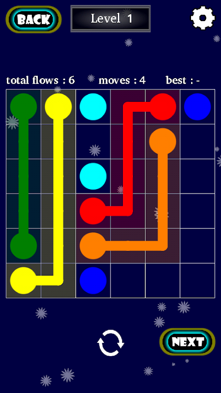 Target to match all the dots with same colour to complete a level.