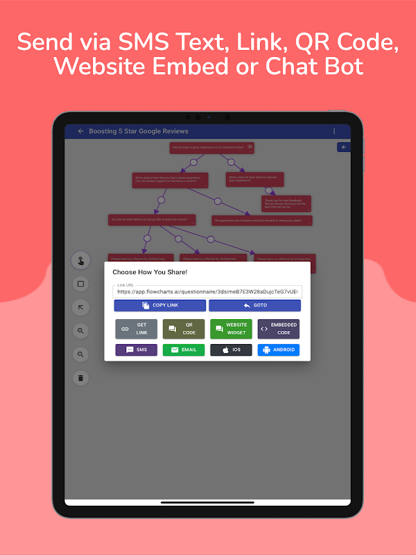 Creëer, distribueer en verzamel gegevens als nooit tevoren met FlowCharts.ai – de ultieme tool voor het maken van dynamische enquêtes, vragenlijsten, formulieren, stroomdiagrammen en workflows. Of u nu feedback van klanten wilt verzamelen, de besluitvorming wilt stroomlijnen of uw publiek wilt betrekken, met FlowCharts.ai kunt u dit allemaal moeiteloos doen.