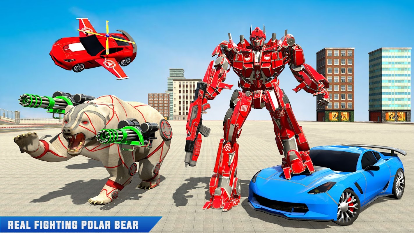Robot-transformatiespel heeft de nieuwste inzending: ijsbeerrobot transformeert transformatiespel voor vliegende auto's. vijandige robotica verspreiden terreur in een coole berenstad in het nieuwste robotberen-spel in de strijd om het robottransformatiespel. De krachtige ijsbeerrobot zal de stad helpen redden door vijanden te elimineren die rondzwerven in robotachtige stadstransformatierobotspellen. Bereid je voor om een superrobotheld te transformeren in een ijsberenrobotspel? In het stadscentrum zijn de robotoorlogen begonnen tussen grote robotheld en ijsbeerrobotheld die kan veranderen in een vliegende auto-robot. Realistische auto-robottransformatie zal je opwinding uitdrukken van het spelen van transformerende robotgames naast ijsbeerrobotspellen. Het transformerende autospel wacht op alle liefhebbers van vliegende auto-robots.