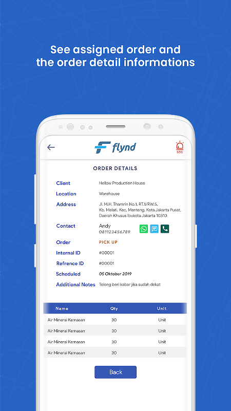 Flynd Driver is een mobiele applicatie van het managementtransportsysteem (TMS) dat bedoeld is voor chauffeurs bij het uitvoeren van verzend- of ophaaldiensten of andere opdrachten.