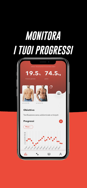 Je hebt je fysieke activiteit altijd onder controle: je ziet welke oefeningen in je trainingsplan staan, je voortgang en hoe je lichaam in de loop van de tijd verandert.