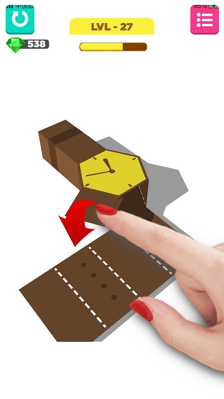 This is a calming, casual game of folding shapes. It followed realistic phyics and you can most certainly try to fold the same exact thing if any of the levels catch your attention! The game can be paused and picked up again at any moment, and is designed for those with a few minutes in between the day to enjoy some hand crafted fun.