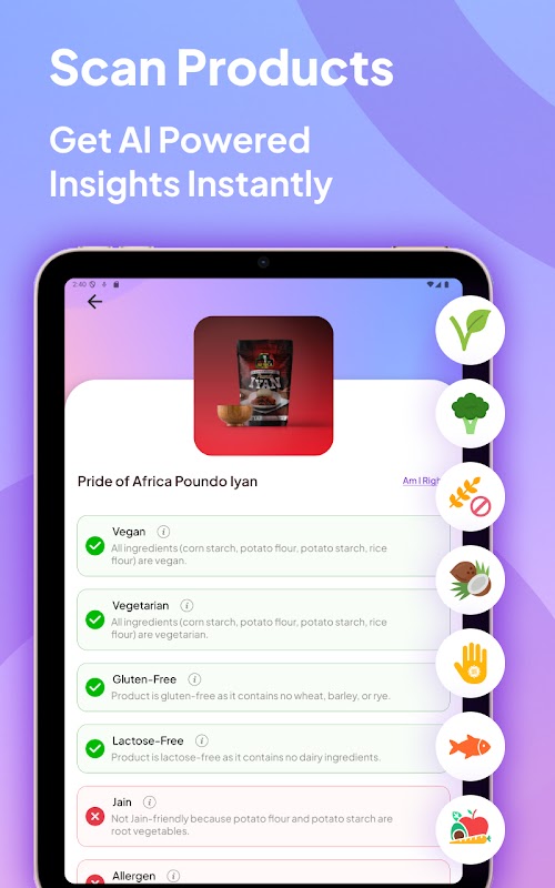5. Jaïnistisch geverifieerd: Controleert direct op uien, knoflook, wortelgroenten en andere niet-jaïnistische ingrediënten. Perfect voor mensen die het jaïnistische dieet volgen - een unieke app-functie die geen enkele andere voedselscanner biedt.