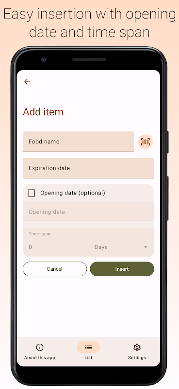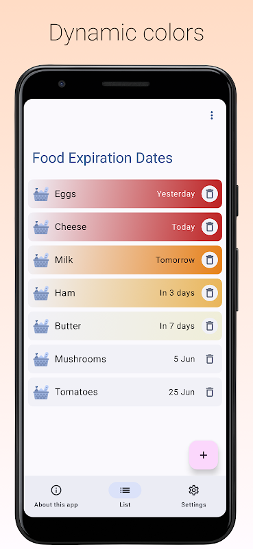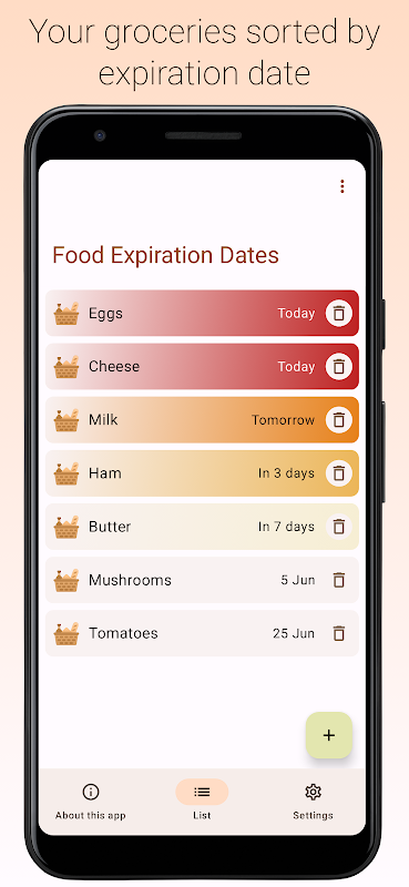 Met deze eenvoudige app kun je voorkomen dat je voedingsmiddelen vergeet te consumeren die bijna verlopen zijn. Het gebruik ervan is eenvoudig: registreer elk voedselproduct samen met de houdbaarheidsdatum en u beschikt altijd over een tabel die u eraan herinnert welk voedsel binnenkort vervalt!