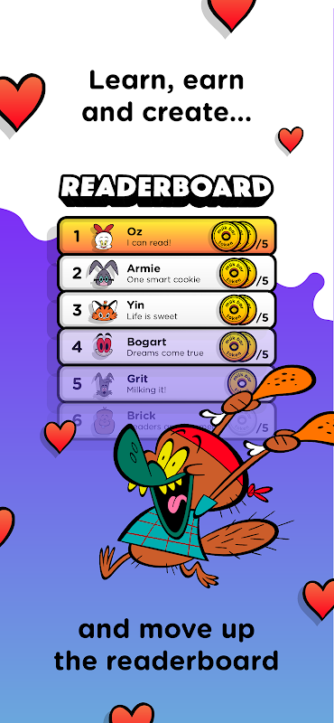 Earn - Unlock new levels, earn exciting treehouse decorations, and race to the top of the Readerboard