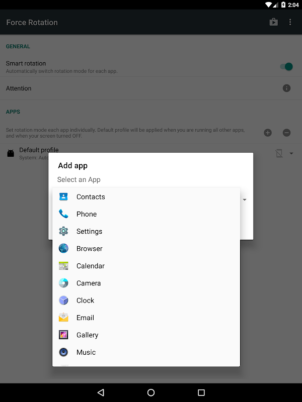 Voeg de "Force Rotation" -functie toe voor andere apps. Het heeft voorrang op de systeeminstellingen en stelt u in staat de rotatie-instelling voor uw apps te wijzigen.