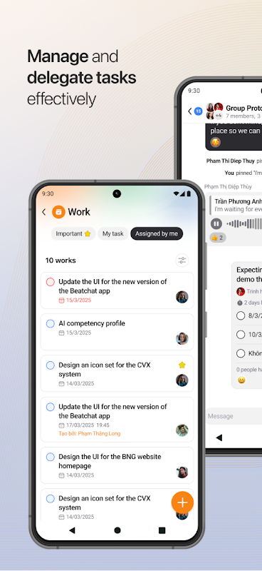 - Blijf altijd en overal verbonden: Geniet van soepele samenwerking via groepsberichten, spraak-/video-oproepen en spraaknotities, waar uw team zich ook bevindt.