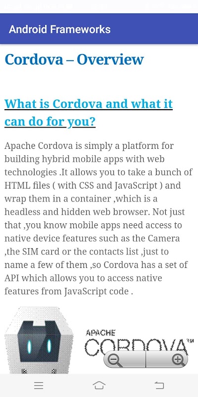 Deze applicatie bevat alle soorten Android Frameworks met alle inhoud met uitleg.