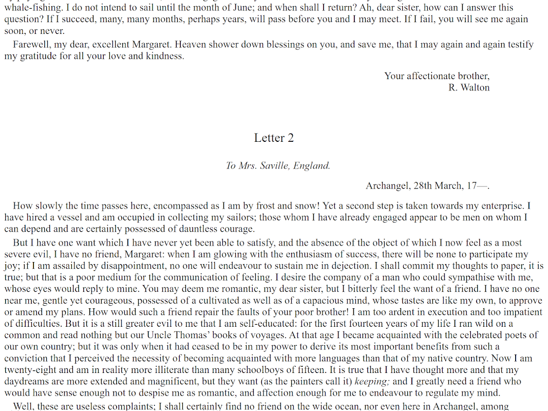 Het valt niet te ontkennen dat Shelley zijn werk doordrenkt met een mysterieuze en soms angstaanjagende halo, waarbij hij een beetje aan twee kanten speelt tussen het puur wetenschappelijke en speculatieve (theoretiseren over galvanisme en bio-elektriciteit), en de meer klassieke horror van monsters, kastelen en dergelijke dingen. Om de twist te benadrukken met het schepsel, dat ondanks dat het een afschuwelijk wezen is voor het oog en de moraal, goed van hart en oordeel blijft, zijn aard in principe goedaardig toont en zijn onmogelijke verlangen: gewoon een andere man zijn.