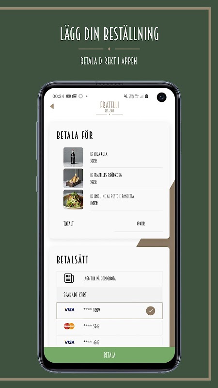 In onze app kun je je eten bestellen en je bestelling direct telefonisch betalen.