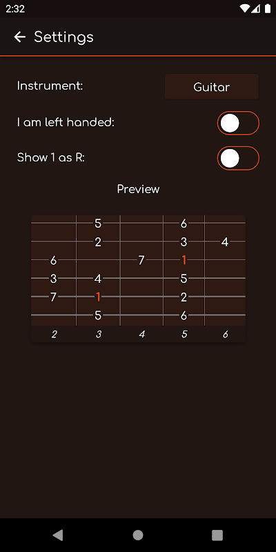 De applicatie heeft een lefty-optie voor linkshandige gitaar- en bassisten.