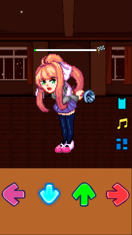 Je taak is heel eenvoudig, met de hulp van Fnf Monika Friday Funkin Night Mod, maak je een unieke hit die je zal helpen de muzikale rapstrijd te winnen. Gebruik hiervoor 4 knoppen en het hoofdpersonage. Het is erg belangrijk om iets unieks te creëren.
