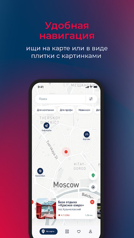 ⁃ Gedetailleerde informatie over de plaats, met een onmiddellijke mogelijkheid om contact op te nemen of een route te bouwen in de navigator;