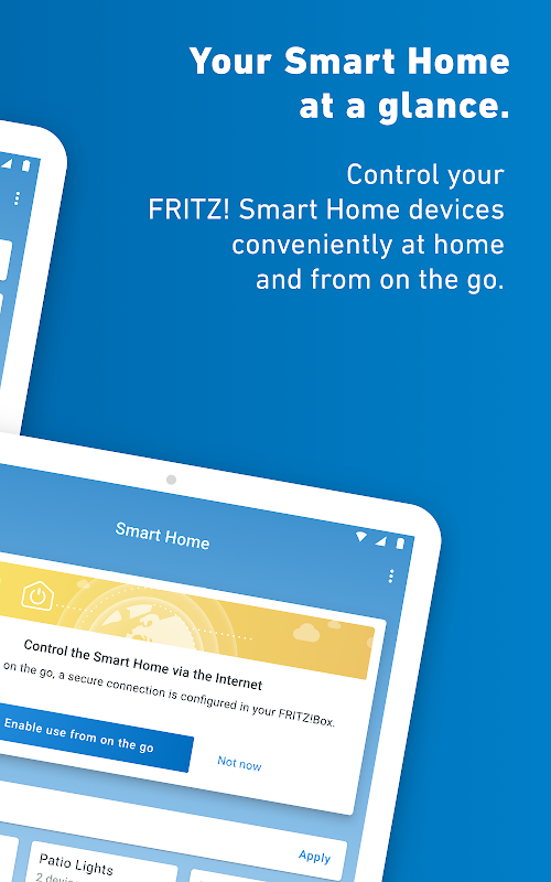 Het nieuwe FRITZ!App Smart Home is thuis en onderweg de handige afstandsbediening voor je smarthomeapparaten van FRITZ!. Je hebt hiervoor een FRITZ!Box met FRITZ!OS vanaf versie 7.10 nodig.