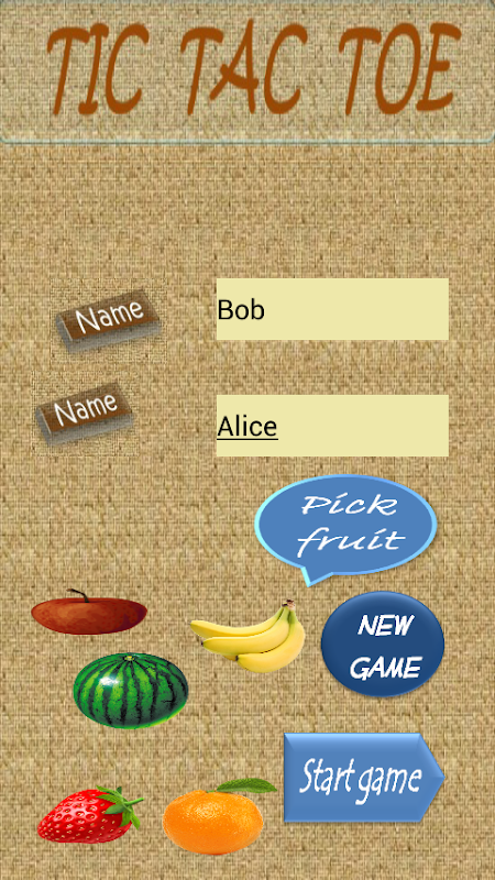 Fruit Tic Tac Toe supports one player and two player game, you can play against another human or against Android device.