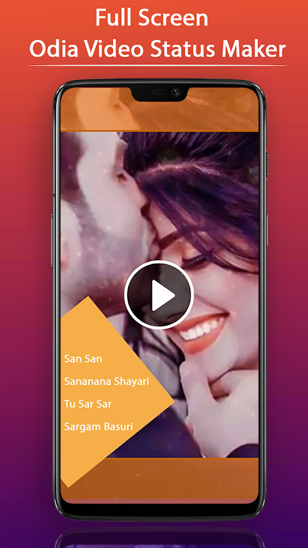 Odia Full Screen Video Status with get the Odia full screen video status application for your smart phones device. See what is watching from the hottest music video to your status and share with them.So, what are you waiting for...? Just install Odia Full Screen Video Status application and get started to use this application and share videos status on your social sides..