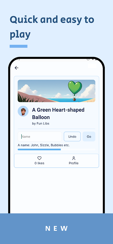 Laat de kracht van je verbeelding de vrije loop met deze hilarische en interactieve ad lib-app, geïnspireerd door Mad Libs™! Maak je klaar om te giechelen, te lachen en te ROFLen terwijl je aan wilde woordavonturen begint!
