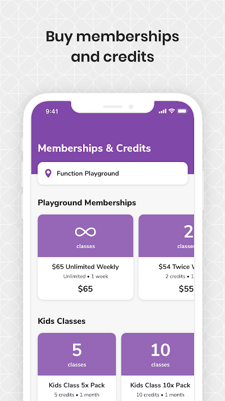 Vanuit de Function PCP Android-app kunt u lesroosters bekijken, uw bestaande reserveringen boeken en beheren, lessen kopen, lopende promoties bekijken en studio-informatie bekijken.