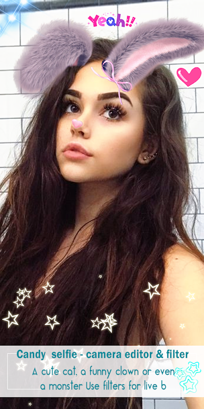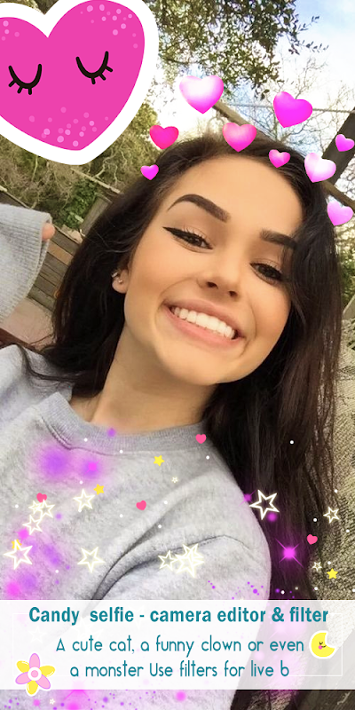 Make your selfies cool with candy selfie – camera editor & filter. Add face filters and effects, try out the new heart crown, light crown and flower crown effects. switch filters Juno, Mayfair and Valencia. Create your own stylish pictures with bokeh effect, glitter, blur and light leak effect.