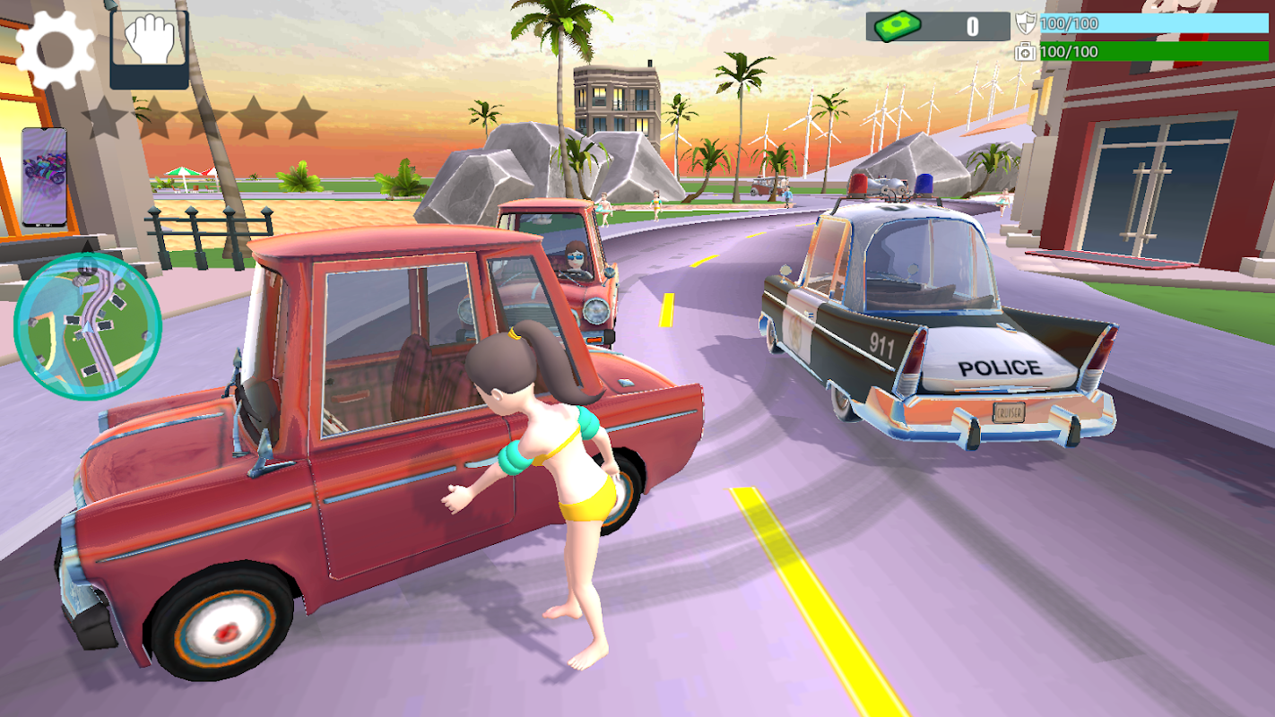 Steel en bestuur auto's, fietsen en vliegtuigen in een leuke wereld terwijl je aan de politie ontsnapt en plezier hebt.