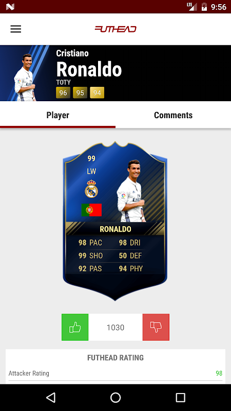 The Futhead App brings you your favourite features from the website, including Player Listing, Squad Building, Comments and more. Keep up to date with player stats and all new FUT item releases. View all the top rated Squads, Comments and players, and even log in to your Futhead account to update your own Squads.