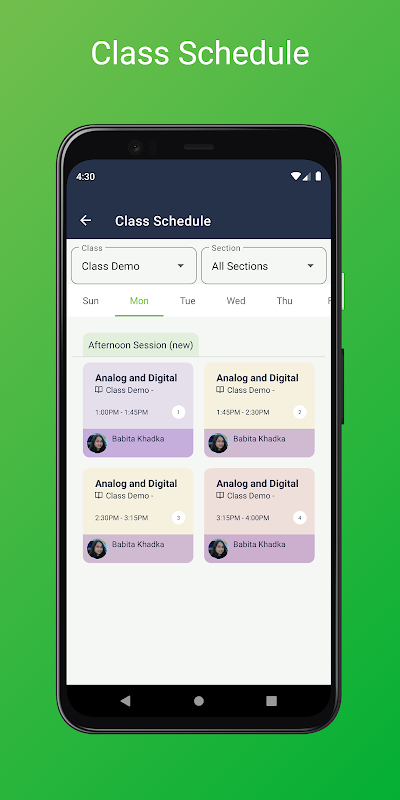 1) Dagelijkse aanwezigheid – Het stelt docenten in staat om de dagelijkse aanwezigheid op een probleemloze manier in slechts enkele minuten bij te houden. Tegelijkertijd ontvangen ouders ook een melding over de aan- of afwezigheid van hun afdeling.