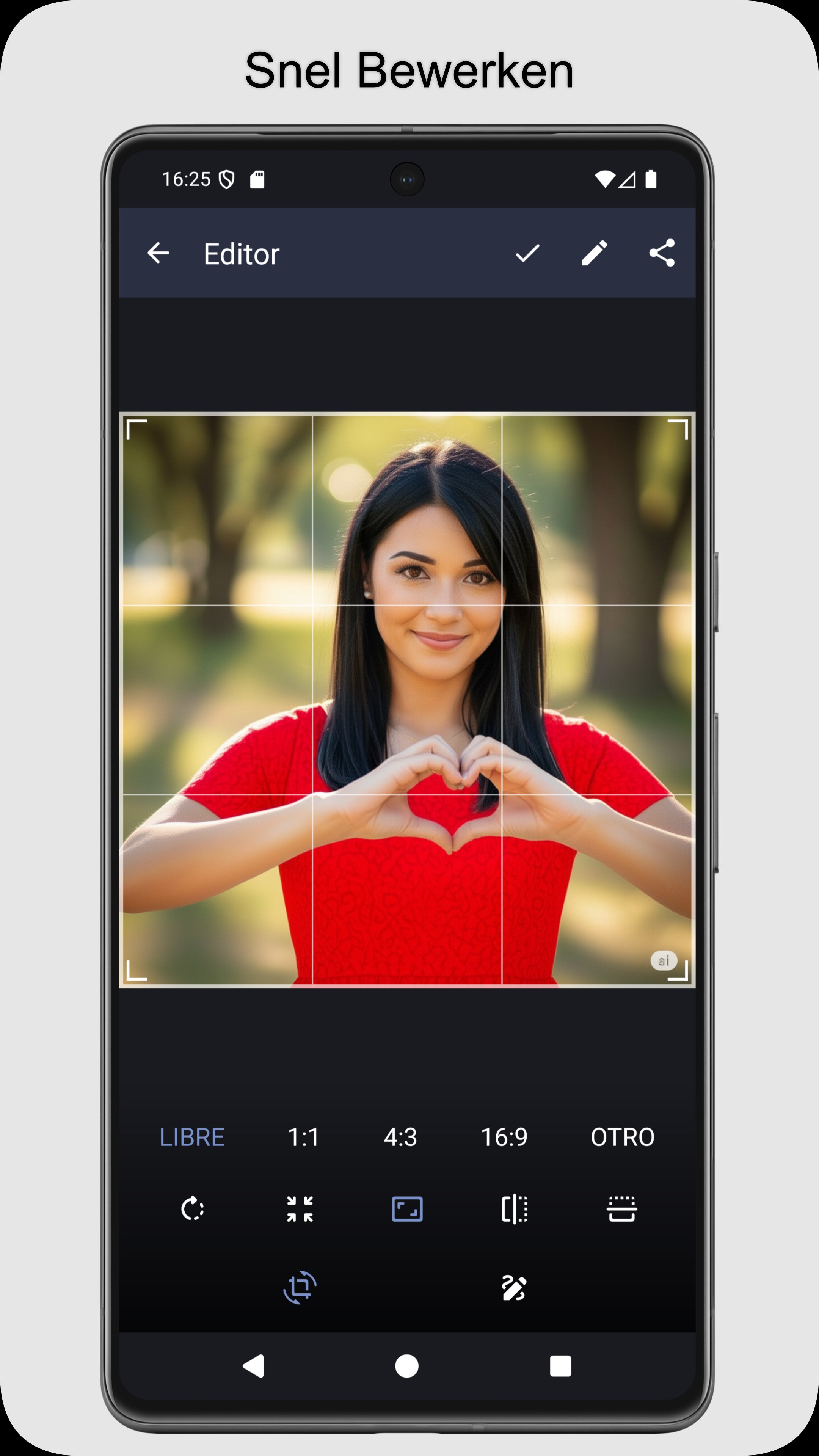 Snijd, roteer, spiegel of wijzig het formaat van afbeeldingen met intuïtieve gebaren.