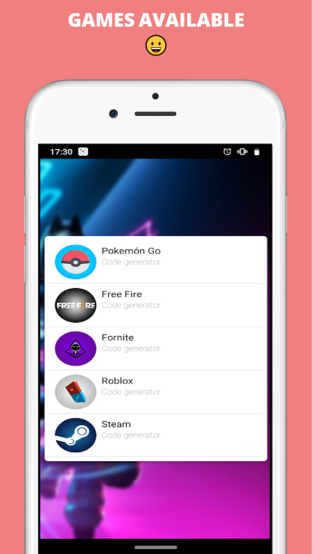 This application generate random codes, not extract information from the databases of the mentioned games, our system is in charge of simulating the creation of promotional codes for the mentioned games.