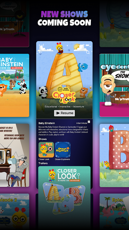 Gamisodes bevat momenteel Inspector Gadget, Baby Einstein en EYEdentity en er komen binnenkort nog meer spannende shows aan!