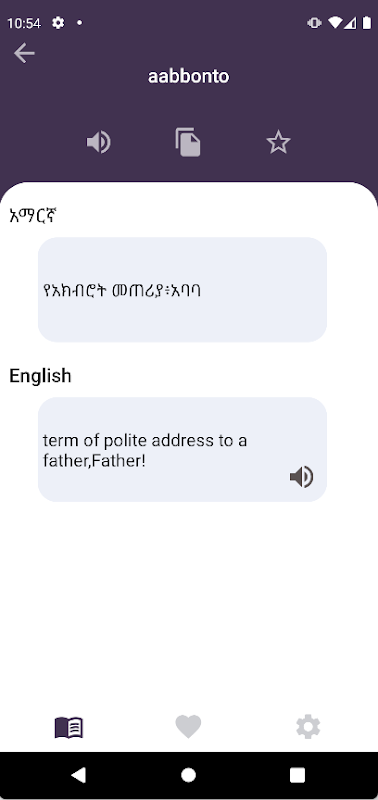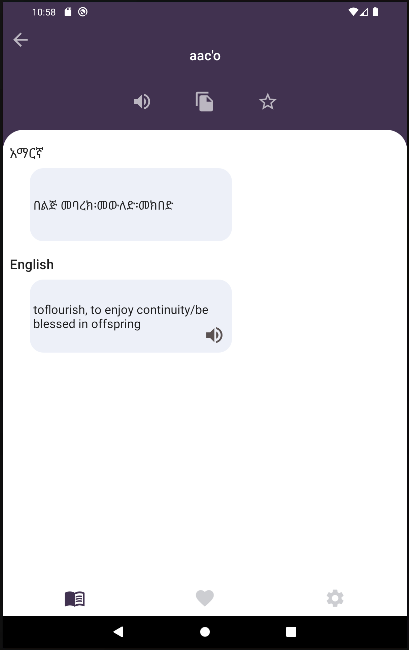 Gamoththo is een taal die door zoveel mensen in SNNPR wordt gesproken, vooral in de Gamo-zone. Deze applicatie is ontworpen om studenten en andere taalsprekers te ondersteunen door een bepaalde Gamoththo-, Amhaars- of Engelse taal te vertalen naar de equivalente andere taal.