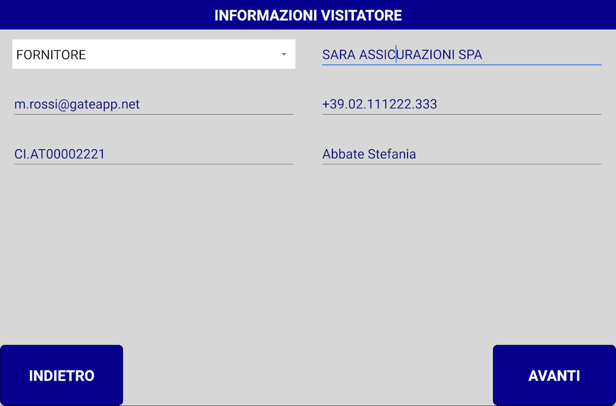 - Raccolta informazioni degli Ospiti (tipo visitatore,Azienda,email,Telefono)