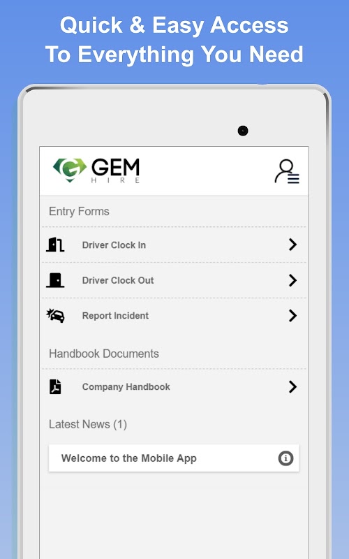 Met de officiële app Gem Hire Limited hebben chauffeurs toegang tot hun facturen, hun persoonlijke gegevens wijzigen, handboeken bekijken, vereiste dagelijkse formulieren indienen en updates en meldingen van OSM's ontvangen