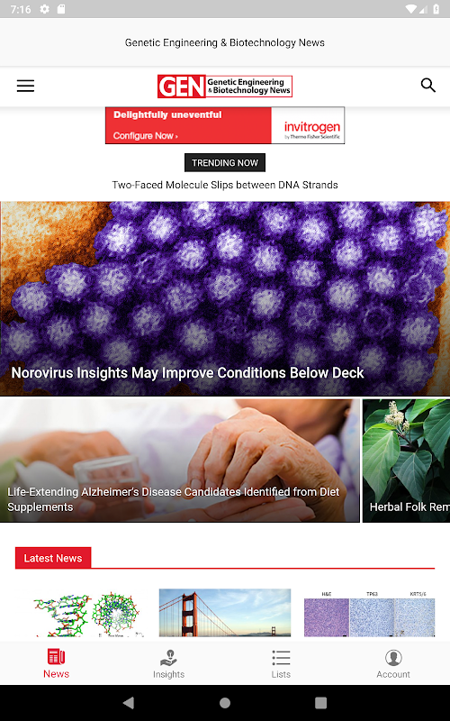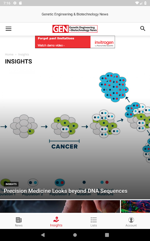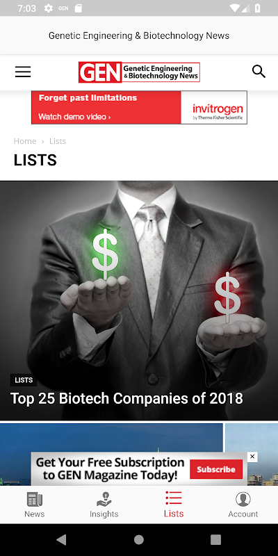 Introducing the new GEN app for Android. If you do research and development or have interest in life sciences, you need this free app. Keep up with all the latest news, insights, technological advancements, new products, and discoveries. We cover the entire bioproduct life cycle from early stage R&D to applied research including OMICs and biomarkers, as well as diagnostics, to bioprocessing and commercialization.