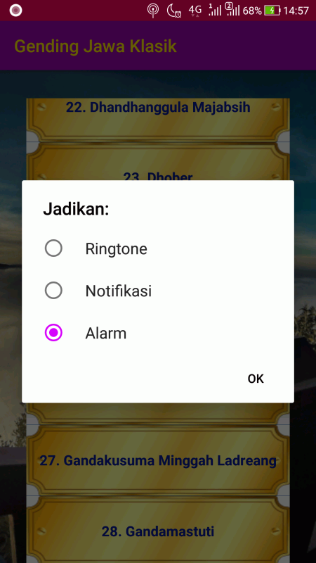 * Ringtone. Setiap audio dapat dijadikan Ringtone, Notifikasi, dan Alarm pada gadget android kita.