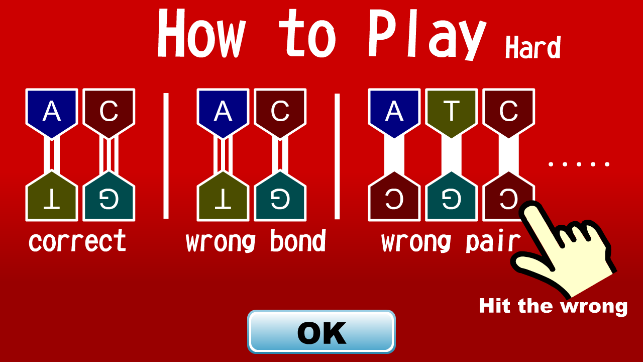 According to base pairing rules (A with T and C with G), hydrogen bonds bind the nitrogenous bases of the two separate polynucleotide strands. An AT base pair with two hydrogen bonds, a GC base pair with three hydrogen bonds. In this game, you can learn the correct base pairing of nucleotides, and hydrogen bonds between the base pairs.
