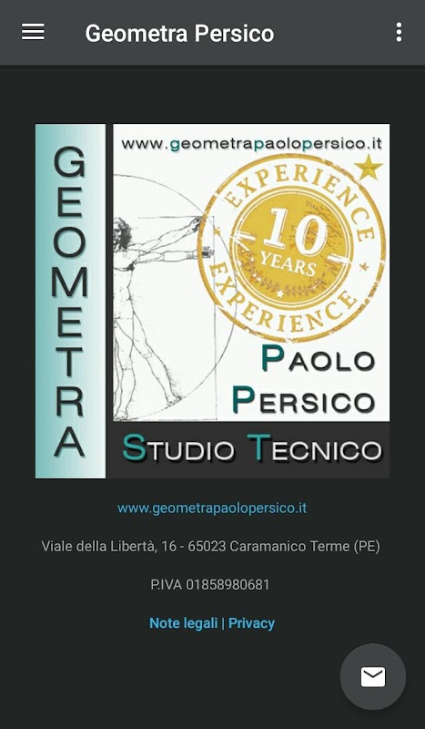 Inoltre è possibile contattare il Geometra Persico inviando una mail o effettuando una chiamata direttamente dall'app.