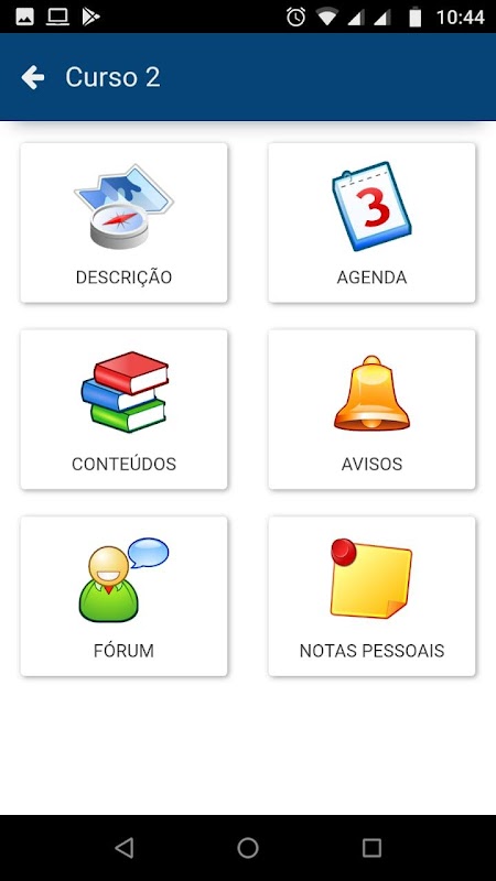 Você vai conseguir ver os seus conteúdos, ter acesso aos fóruns, documentos, mensagens, exercícios e vai receber as notificações de alterações dos seus cursos.