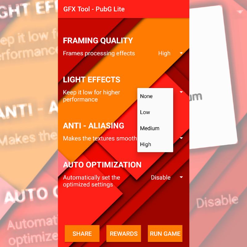 In deze GFX Tool kunt u de automatische grafische instellingen in- of uitschakelen die automatisch de meest optimale en compatibele grafische afbeeldingen voor uw apparaat detecteren en instellen en u laten genieten van gamen zonder enige vertraging.