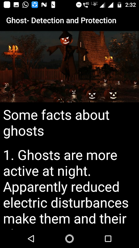 This app contains all information about ghosts. You can be a Ghost detector after reading this app. you can protect yourself from ghosts by this information.The best from the world of astrology and darkness.Tricks to save you from ghost evil spirits their detection and protection in emergency situations.All about evil souls, ghosts, monsters, positive energy its science existence.The app talks about ghost detection,ghost protection,ghost stories,and various ways to call a ghost.