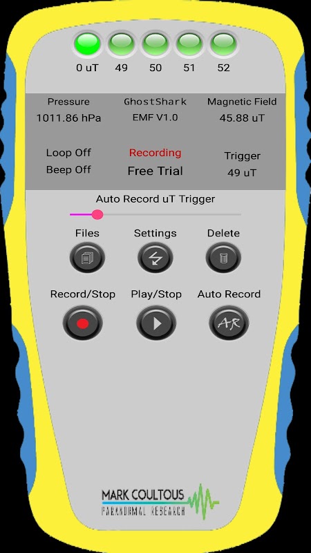 Deze app is ontworpen voor spookjagers en onderzoekers om emf te detecteren en ook te beginnen met opnemen wanneer emf-toename wordt gedetecteerd.