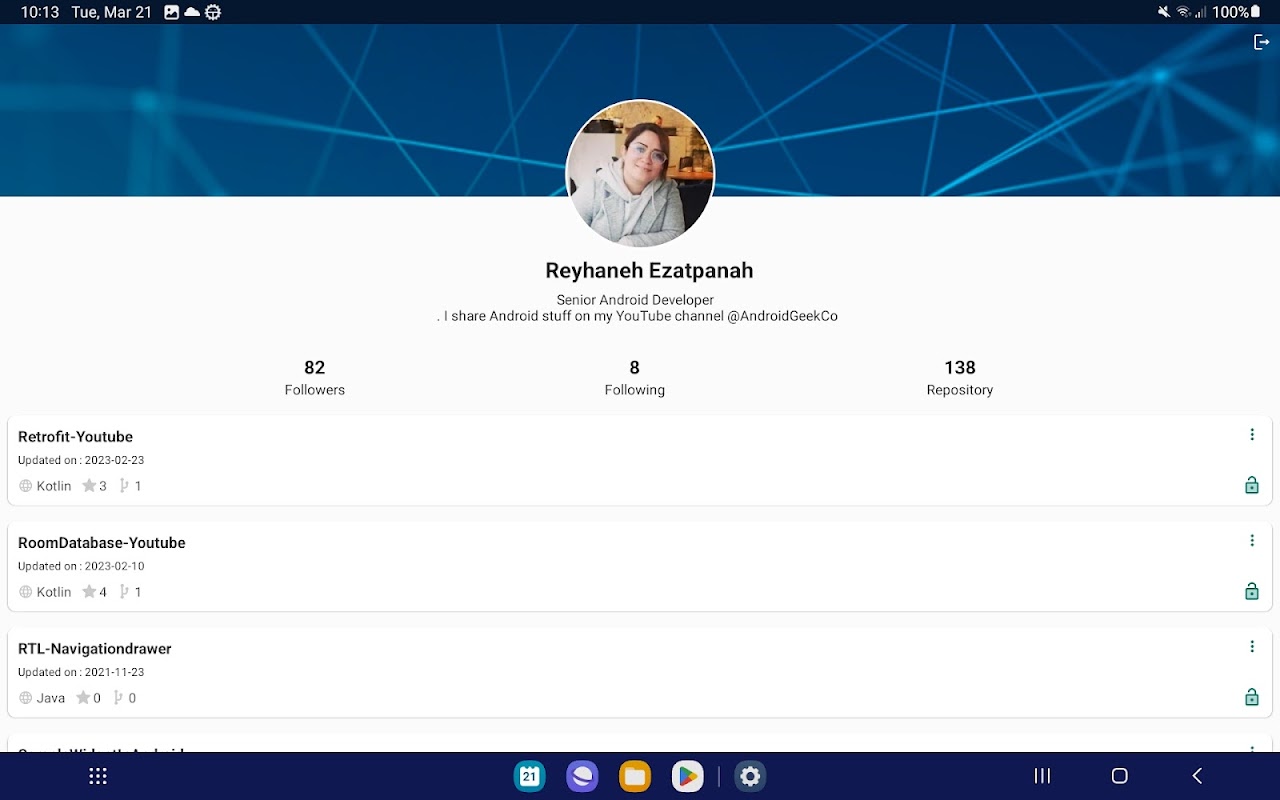 U hebt rechtstreeks toegang tot uw repo en u kunt uw openbare repo ook met anderen delen via deze applicatie. U kunt uw totale repo-nummer, volgers en volgers zien.