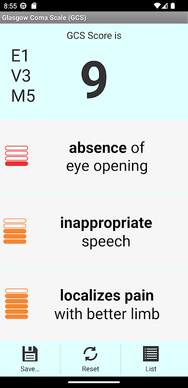 Deze toepassing helpt bij de beoordeling van de Glasgow Coma Scale, geeft instructies hoe je onderzoek en hoe je scores toekennen voeren, berekent Glasgow coma score en maakt het opslaan van de scores in de doorzoekbare database voor latere vergelijking / follow-up.